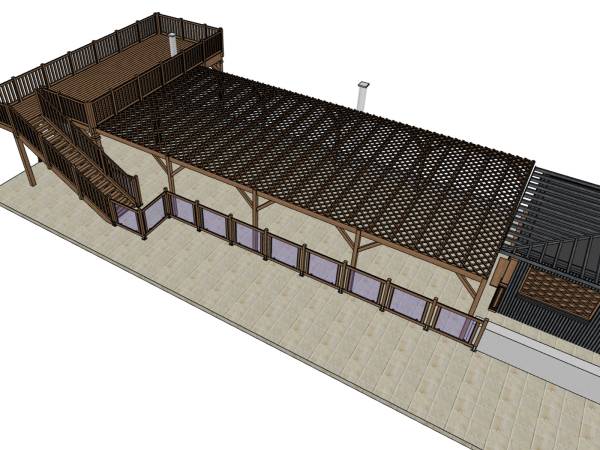 - Een pergola met solarium bij de snackbar bij het zwembad
