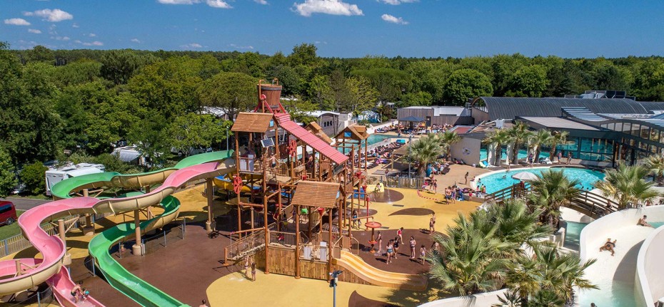 Omdat elke plons in het water goed is voor een lachsalvo, elke afdaling van de glijbaan de euforie ten top doet stijgen en elke golfslag als een streling van het water voelt, zal het niemand verbazen dat het zwembad op elke camping ‘the place to be’ is. Het aanleggen van bijzondere aquaparken in onze etablissementen werd in de loop der jaren een prioriteit bij Yelloh! Village. Duik in de wereld van onze aquaparken!